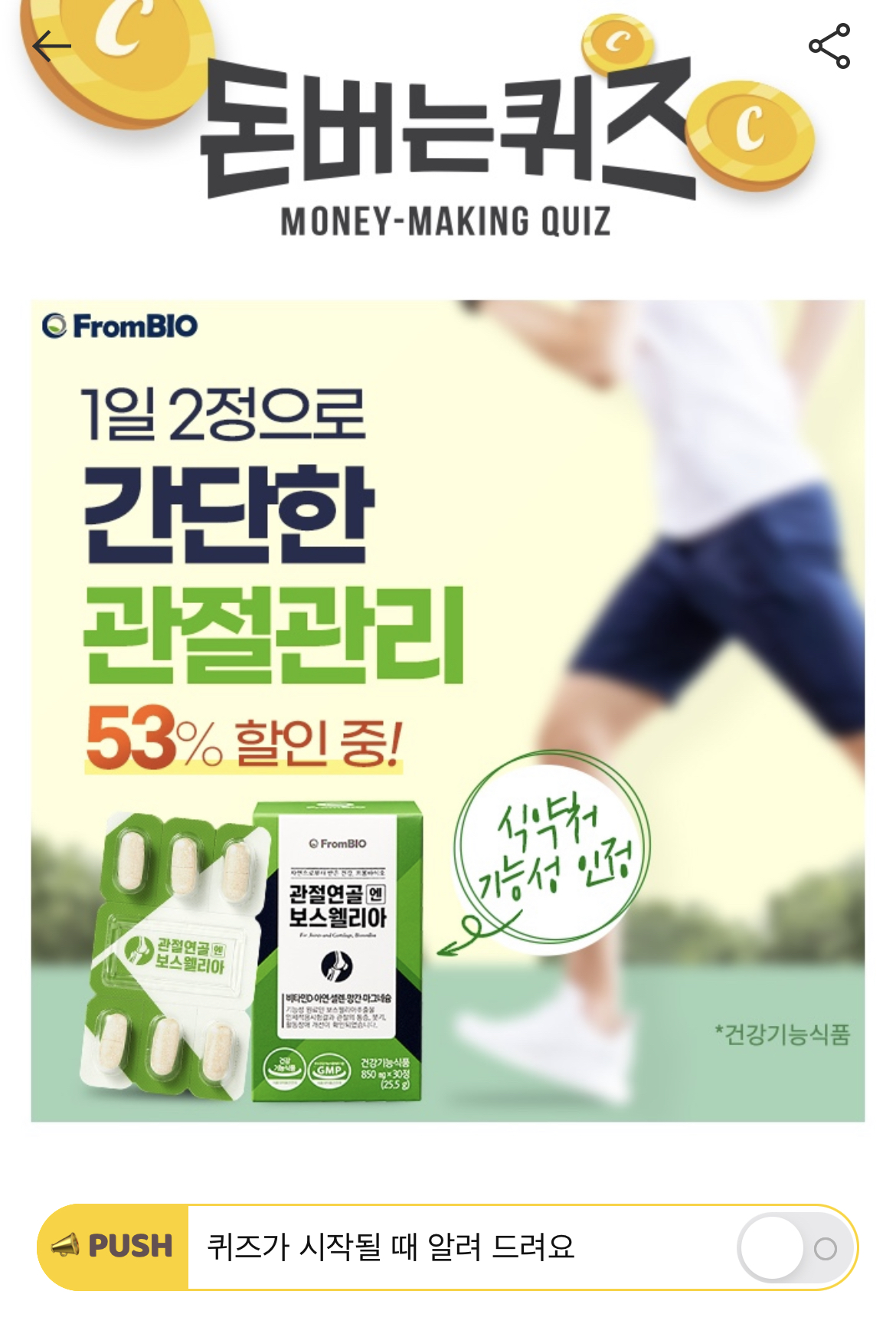 캐시워크 돈버는 퀴즈 정답 프롬바이오 보스웰리아 ㅂㅎ