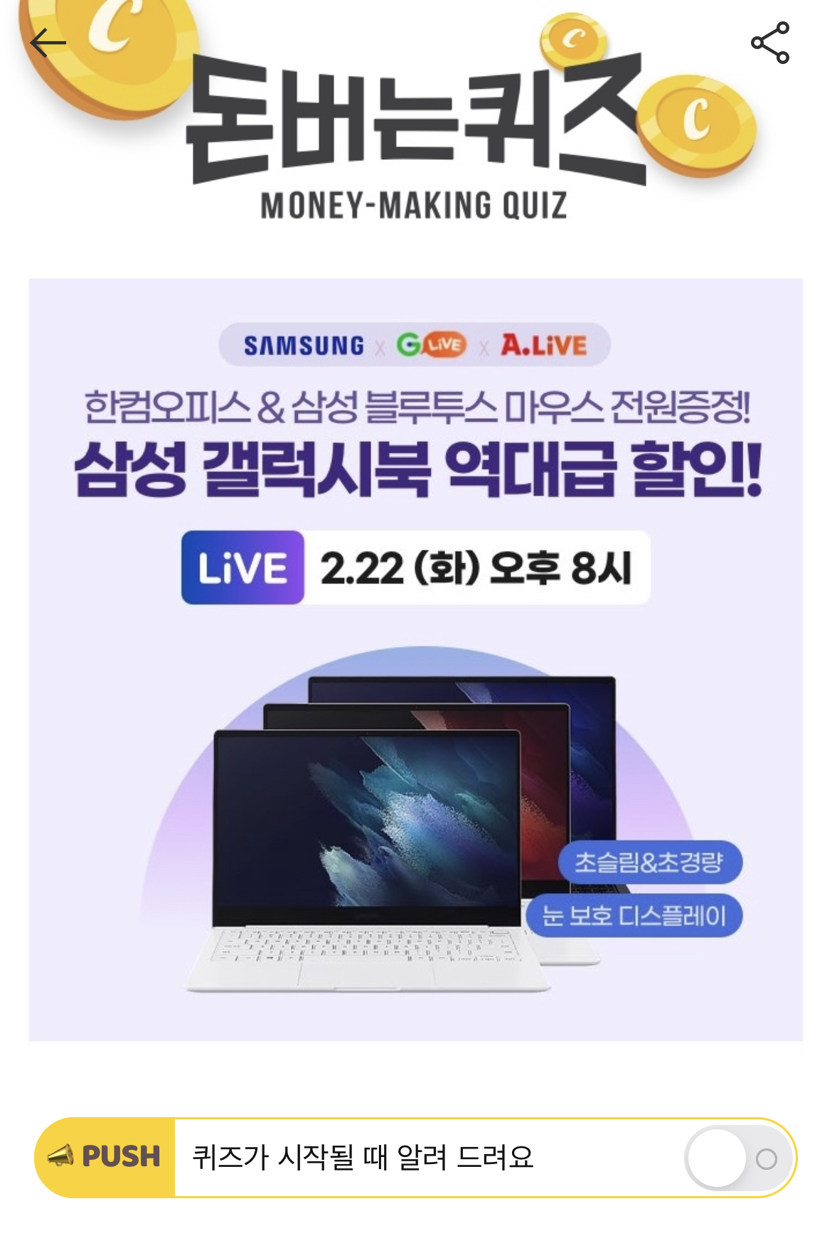 Glive 디지털가구빅세일 OO OOOO LIVE 에서 삼성 노트북이 파격할인이라며? 여기서, OOOOOO에 들어갈 단어는 무엇일까요?