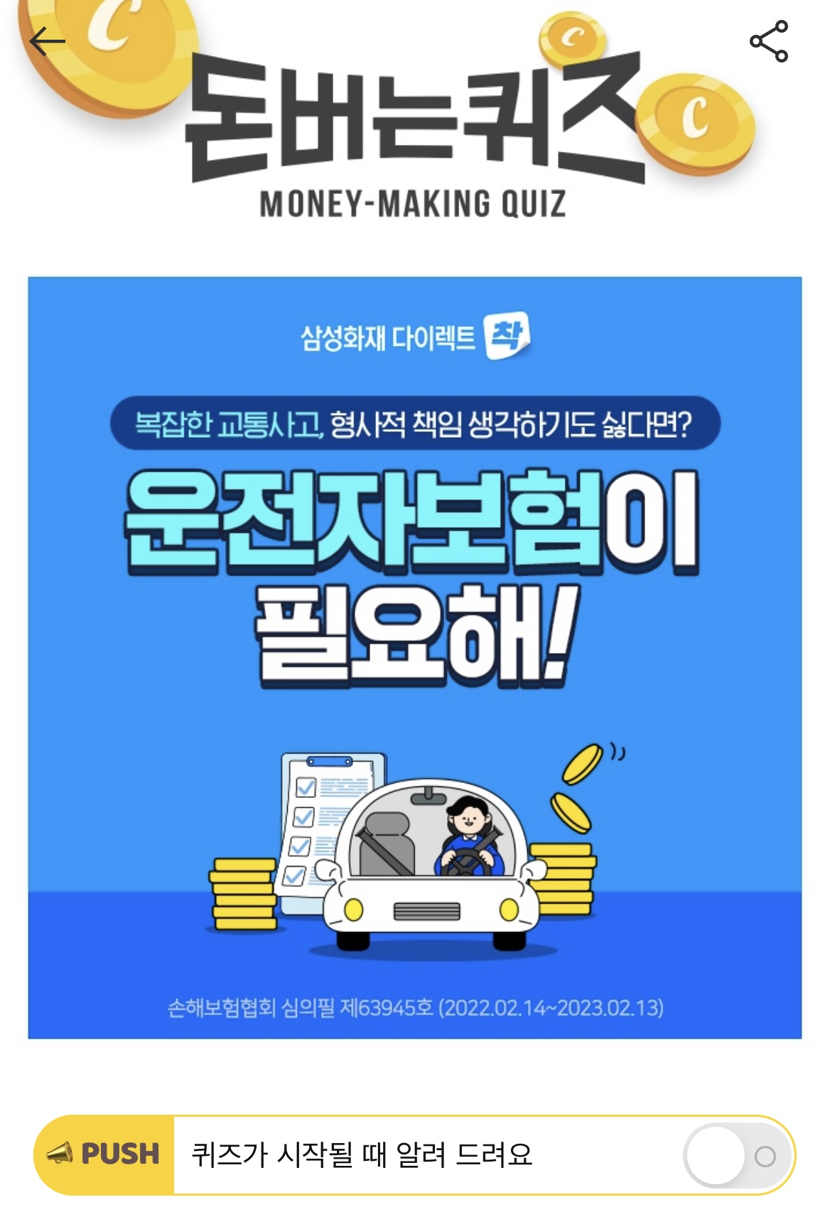캐시워크 돈버는 퀴즈 정답 삼성화재 ㅈㄷㅊ