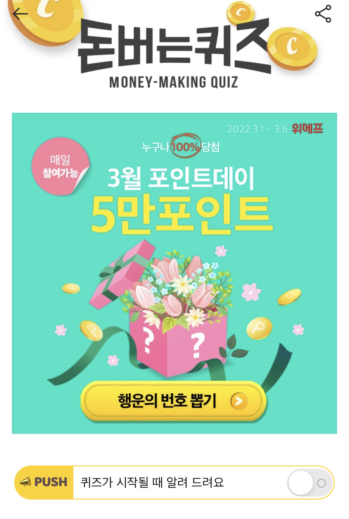 캐시워크 돈버는 퀴즈 정답 위메프 3월 포인트데이 숫자